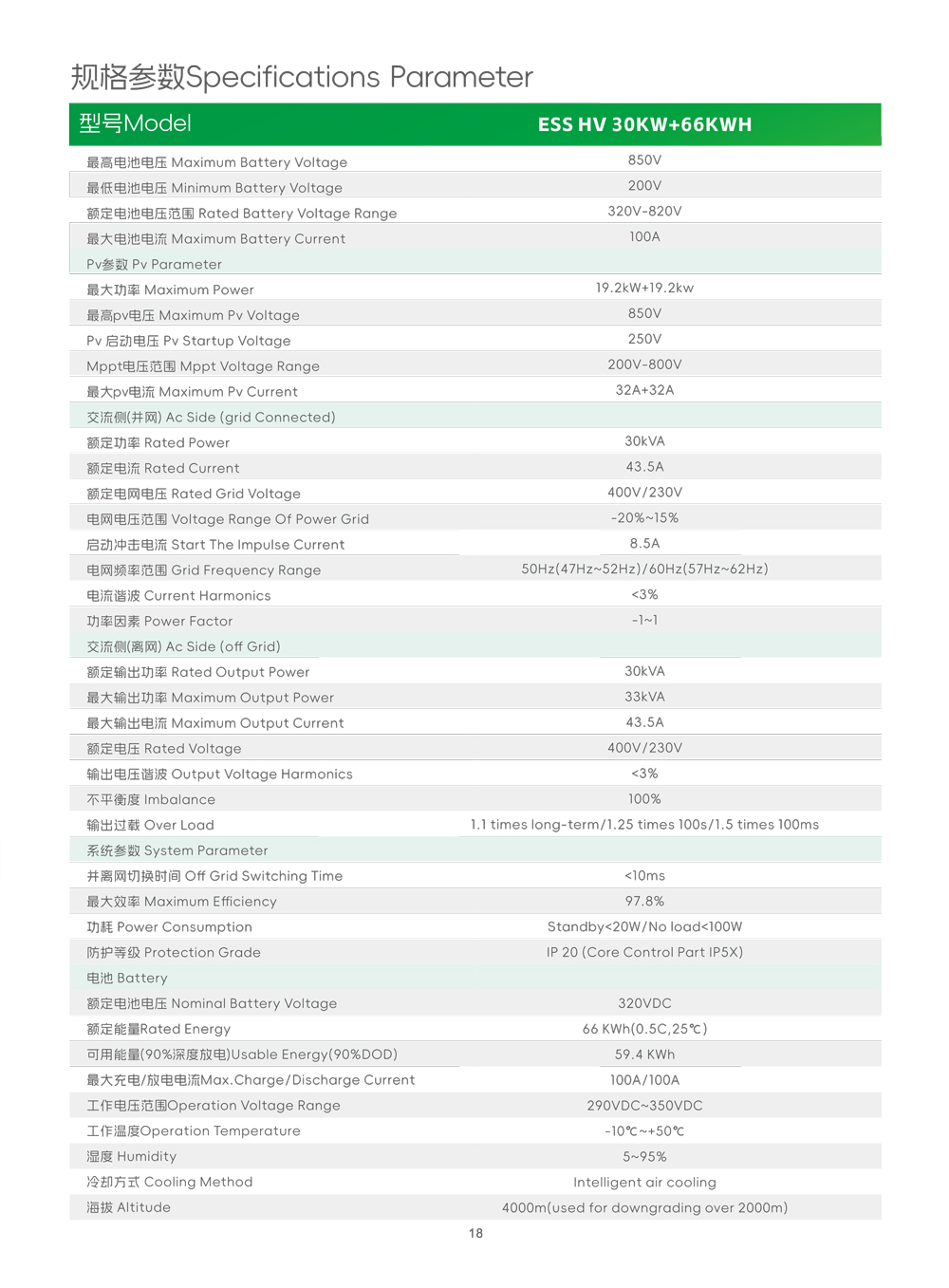 INDUSTRIAL & COMMERCIAL ENERGY STORAGE SYSTEMESS HV30KW+66KWH