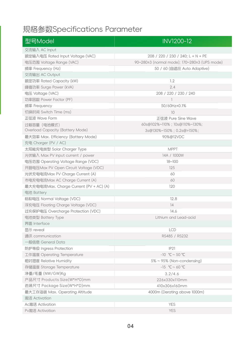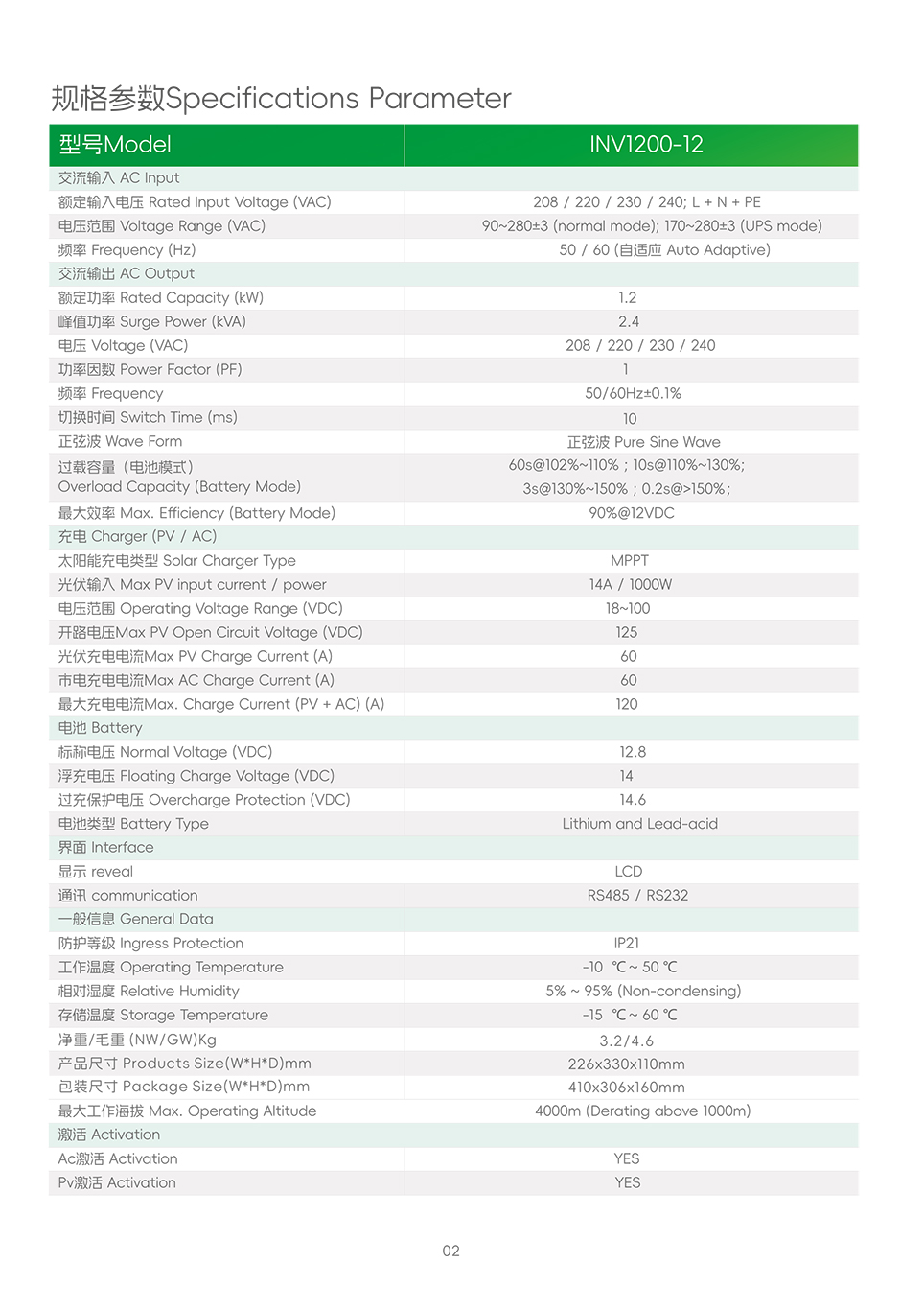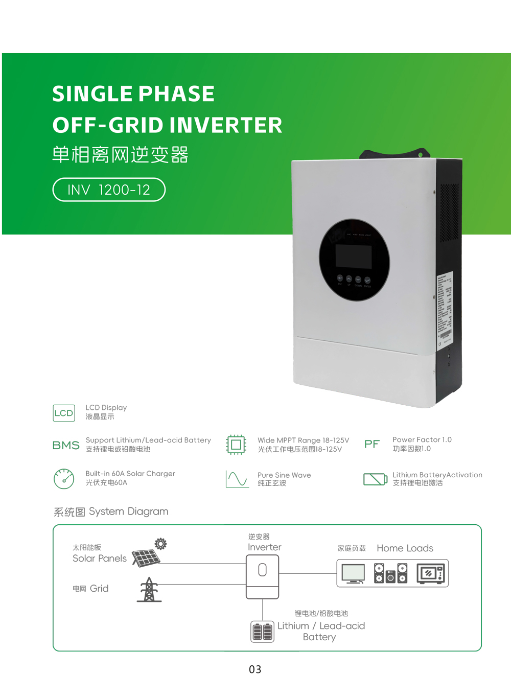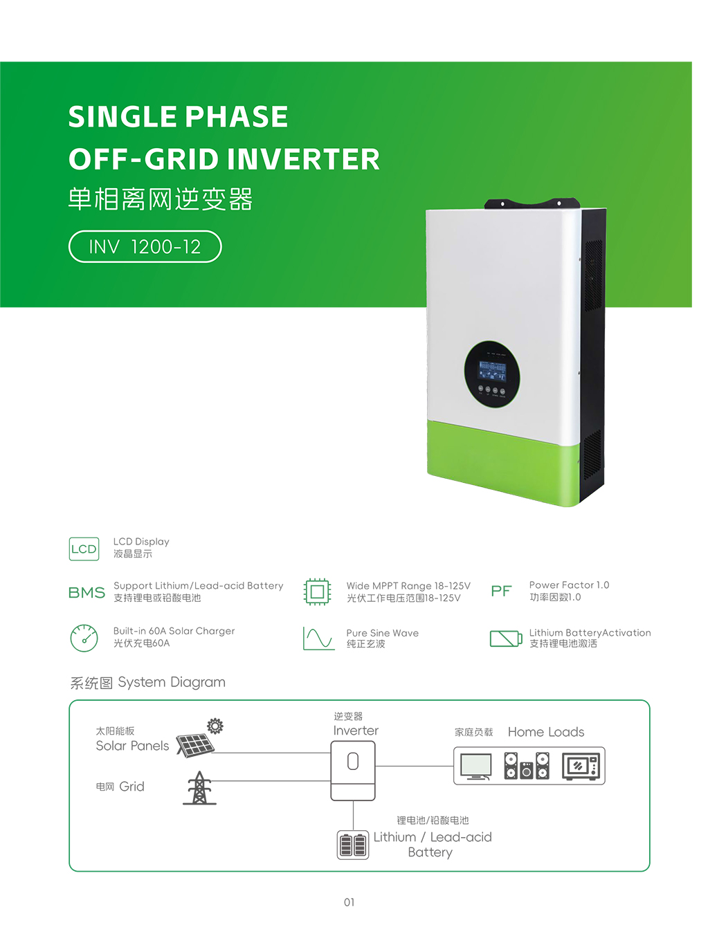 SINGLE PHASEOFF-GRID INVERTER INV1200-12