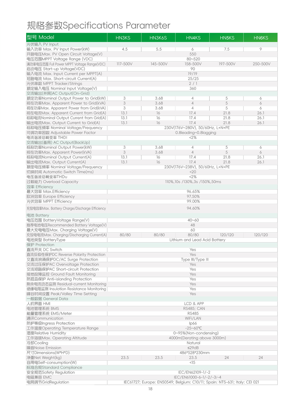 SINGLE PHASEHYBRID INVERTER HN3KS/HN3K6S/HN4KS/HN5KS/HN6KS