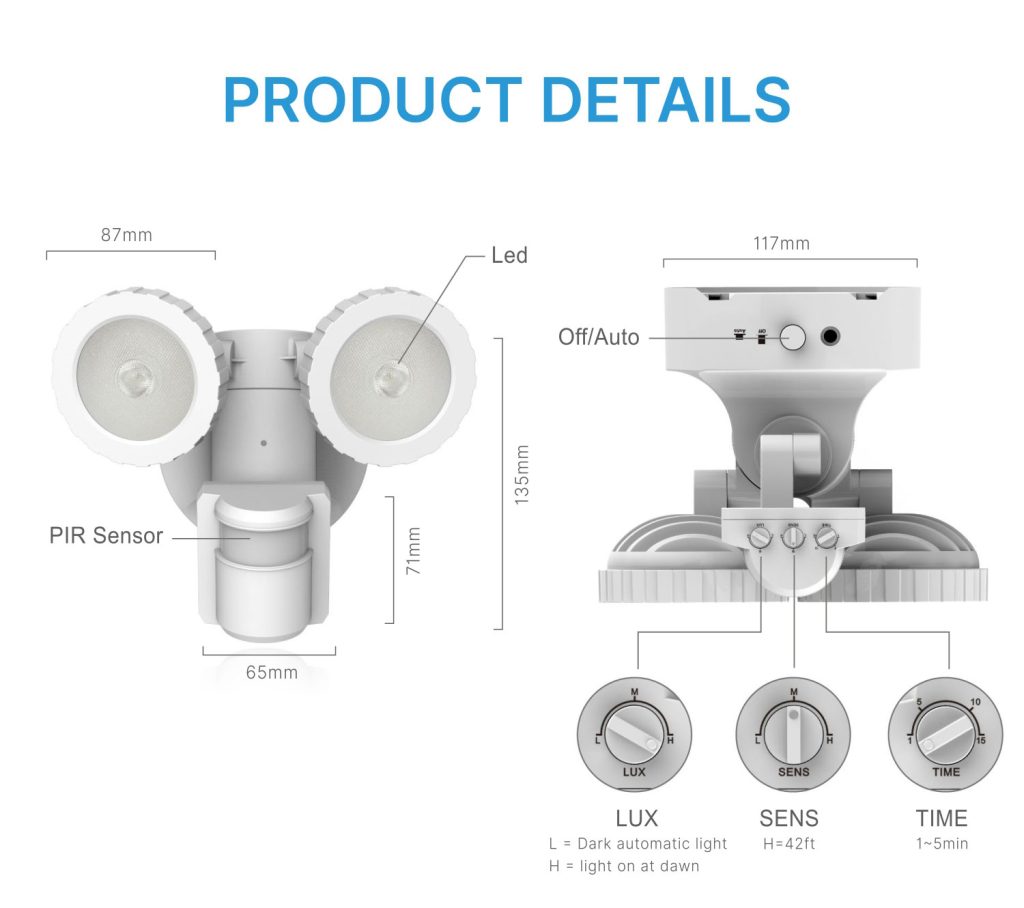 ●Adjustable sensitivity, timer and LUX