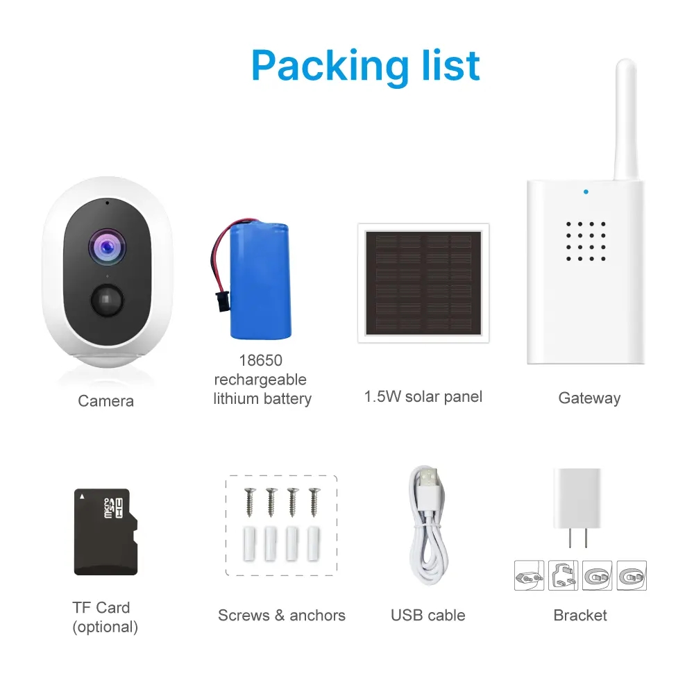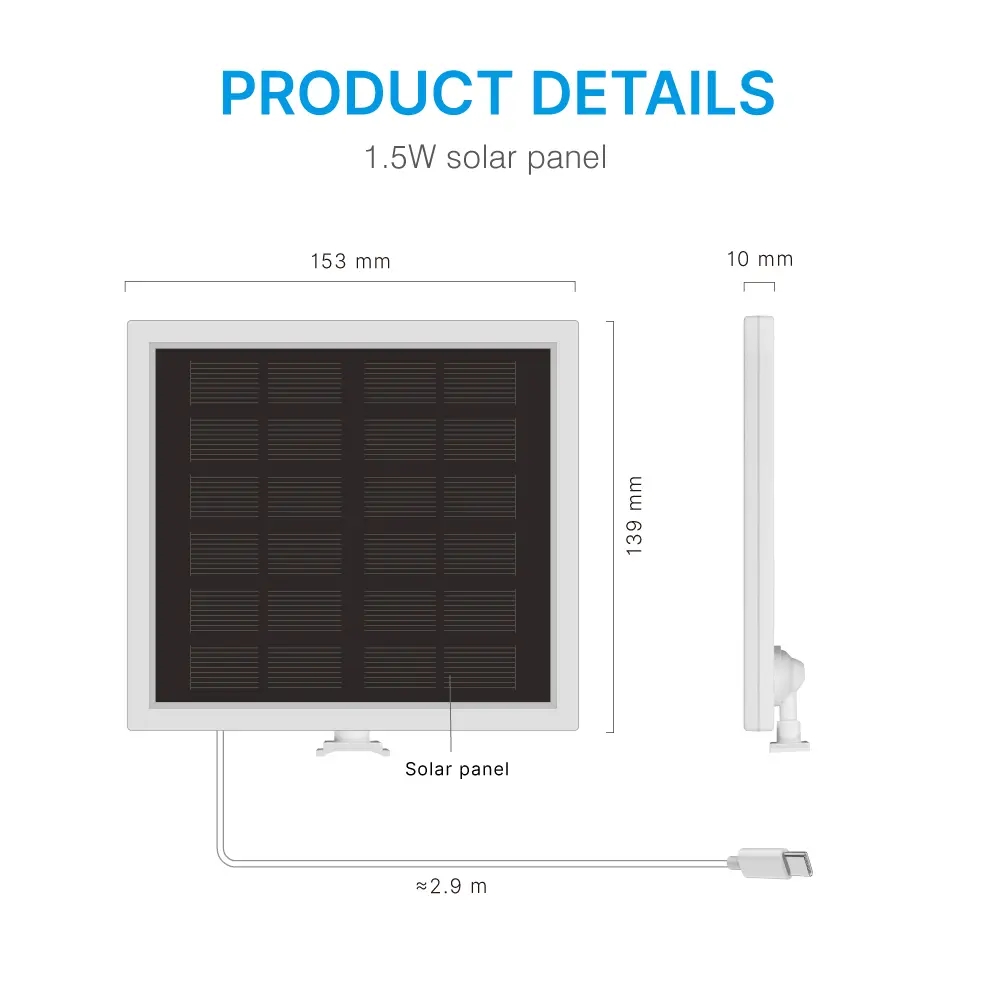 ●Built-in 18650 batteries, which can be charged via the solar panel or via a DC5V power adapter.
