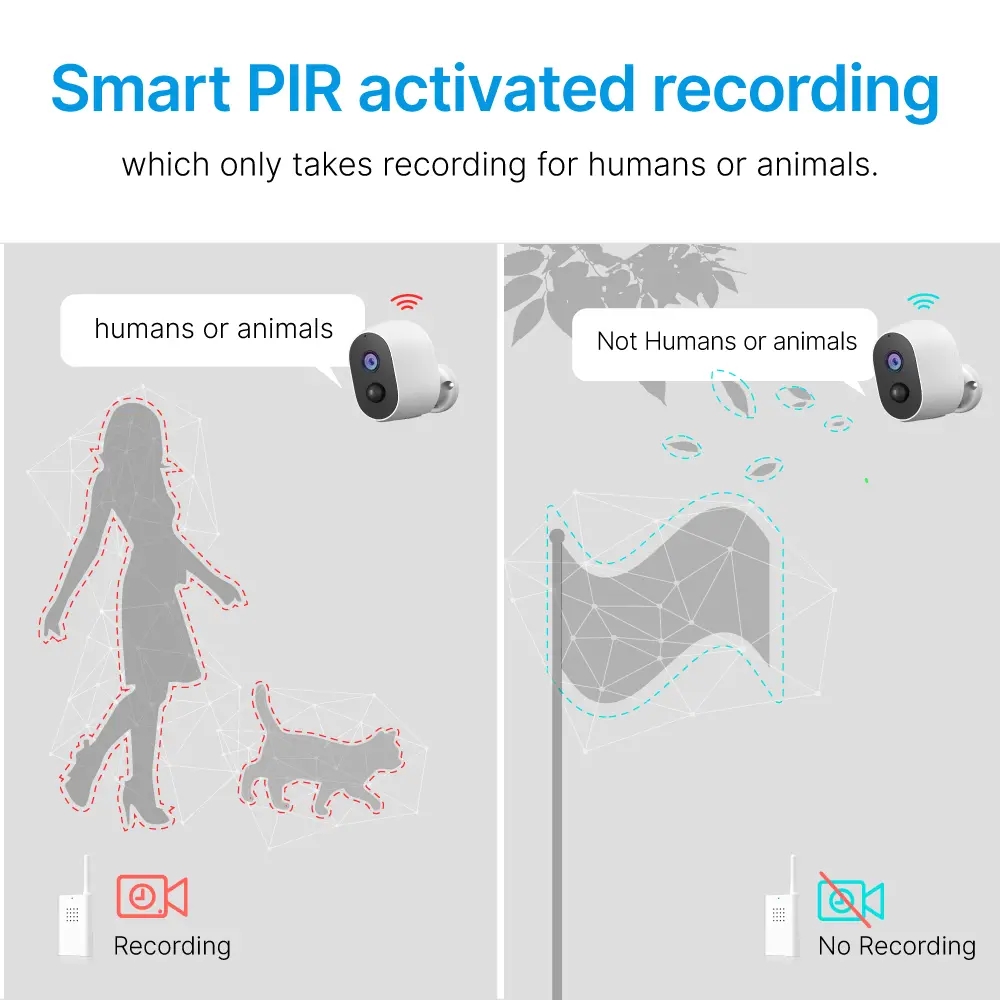 ●Smart PIR activated recording, which only takes recording for humans or animals.