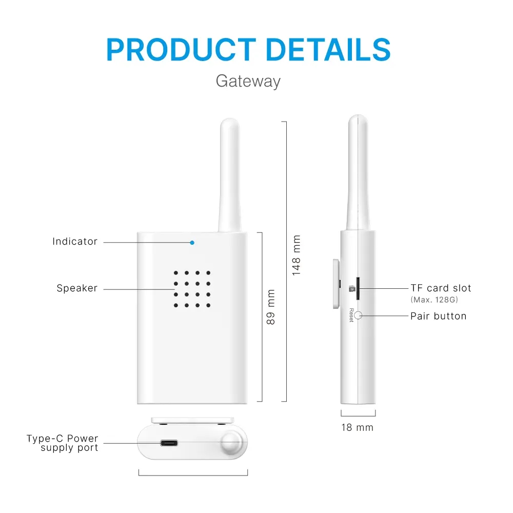●Video recording playback, installing the TF card into the gateway can prevent the video data from stealing.